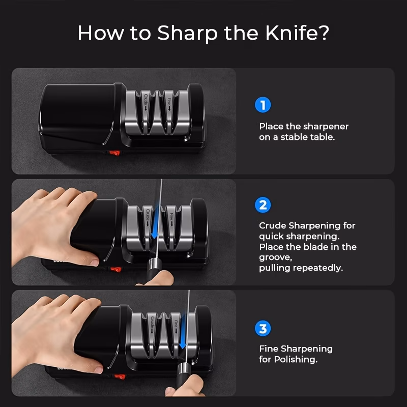 The powerful electric motor offers quick, efficient sharpening, allowing you to restore even the dullest knives to their optimal sharpness in no time.