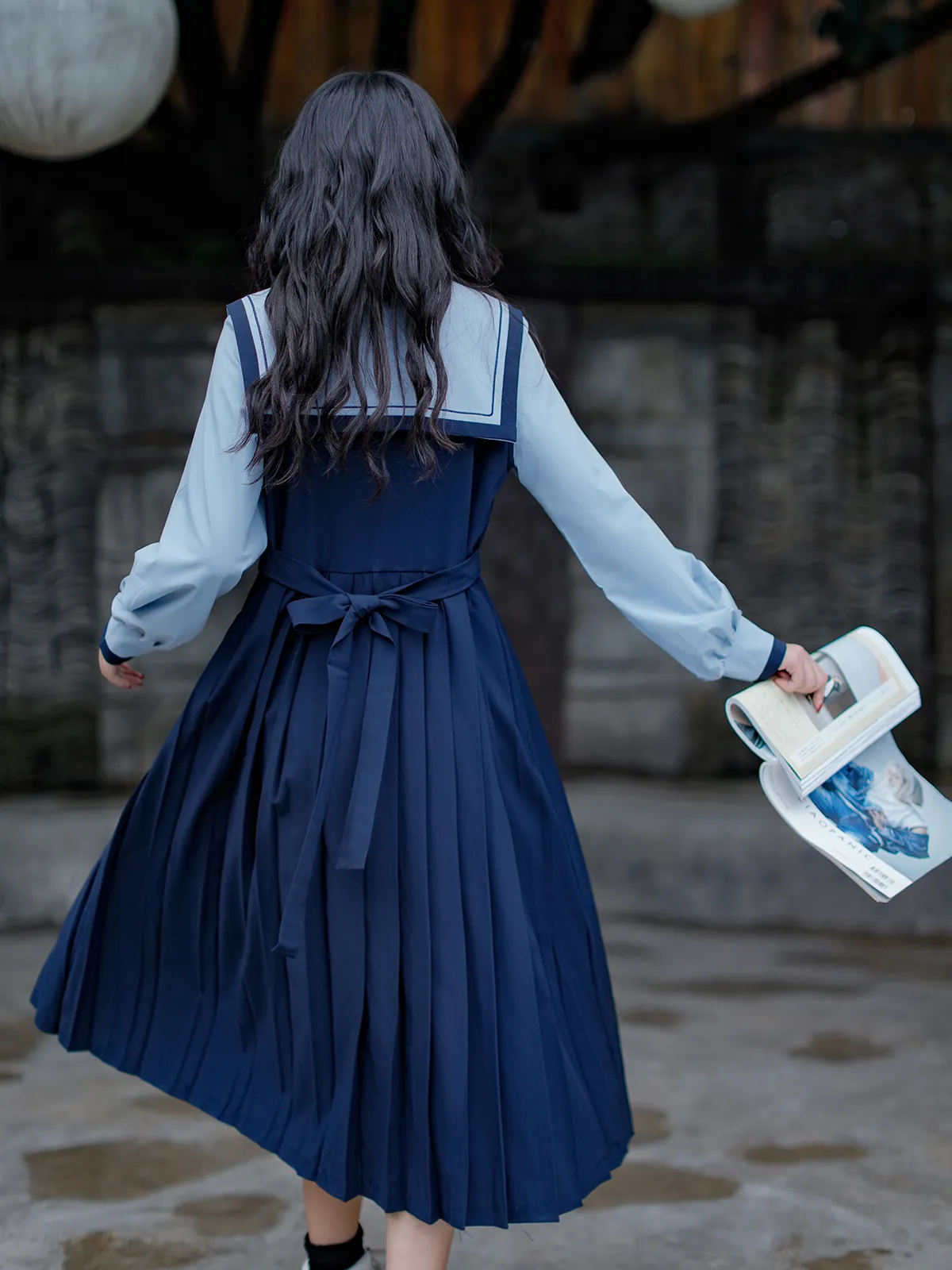 Crafted from a soft, breathable fabric, the Japanese Navy Neck Embroidered Dark Blue Preppy Dress ensures all-day comfort without compromising on style. The lightweight material is perfect for layering in cooler weather or wearing on its own during warmer months, offering flexibility for year-round wear.