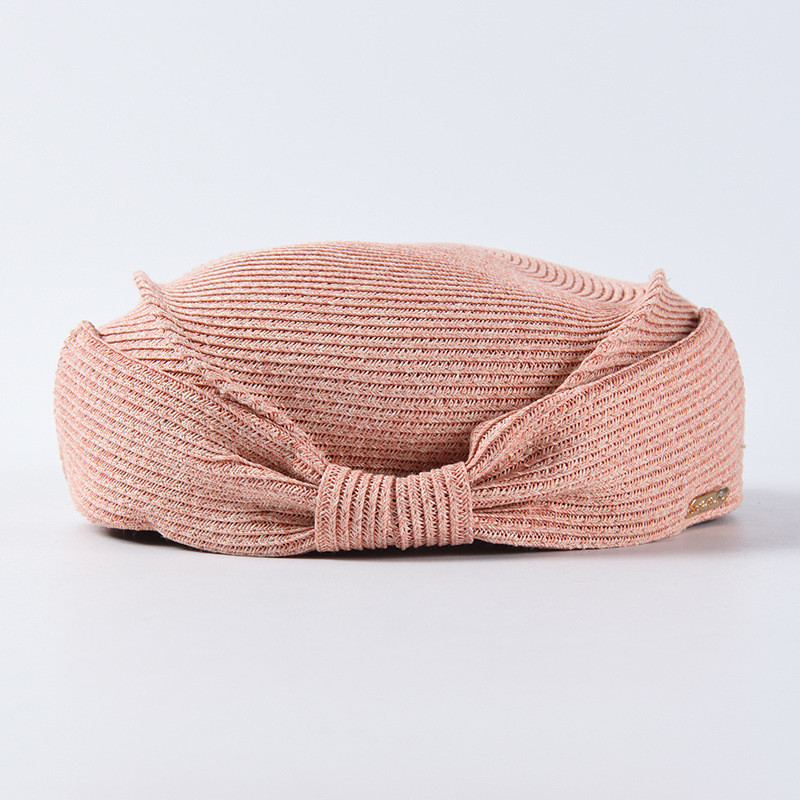 Japanese Straw Beret Summer Hat: Elegant Style with a Feminine Bow