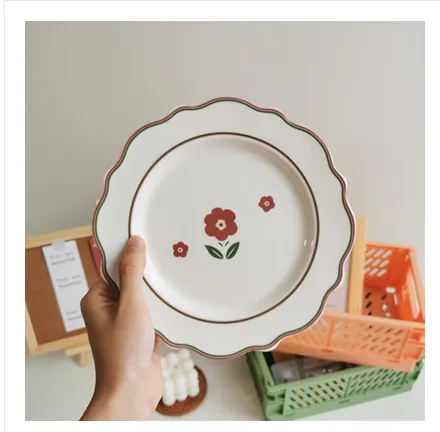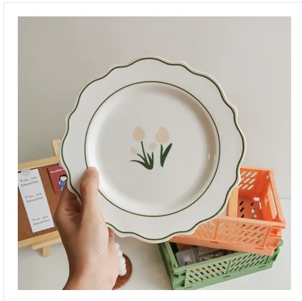 Key Features of the Japanese Style Tulip Ceramic Flat Plate Cute Small Dinner Plate Dish