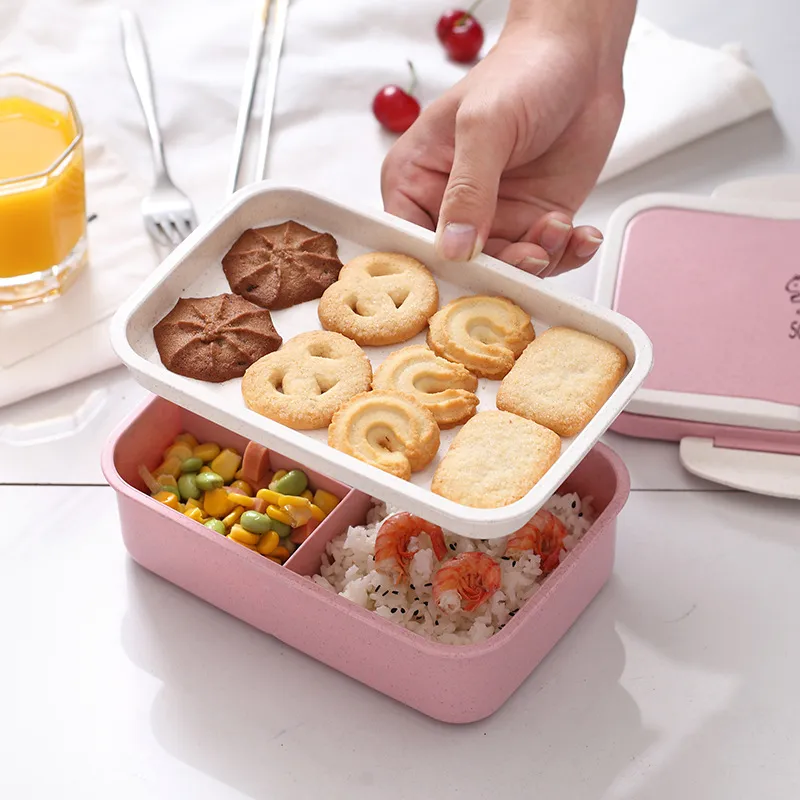 3. Lunch box with compartments. You can store different foods, fruits, and avoid odors between foods.