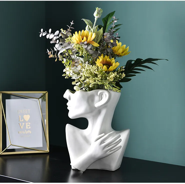 Jarrón con Retrato Creativo de Estilo Nórdico Moderno: Florero con Cabeza Humana