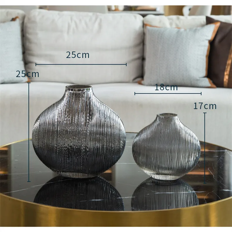 Jarrón de vidrio con rayas plateadas, arreglo floral, accesorios hidropónicos, accesorios de decoración moderna para el hogar