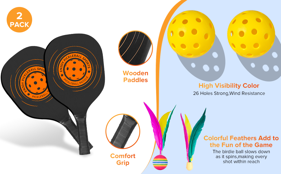 - ENDLESS RALLIES FOR EVERYONE: Crafted with high-quality materials, our paddles and birdies are designed for durability and long-lasting performance. It’s the ultimate blend of fun and skill for all ages!
