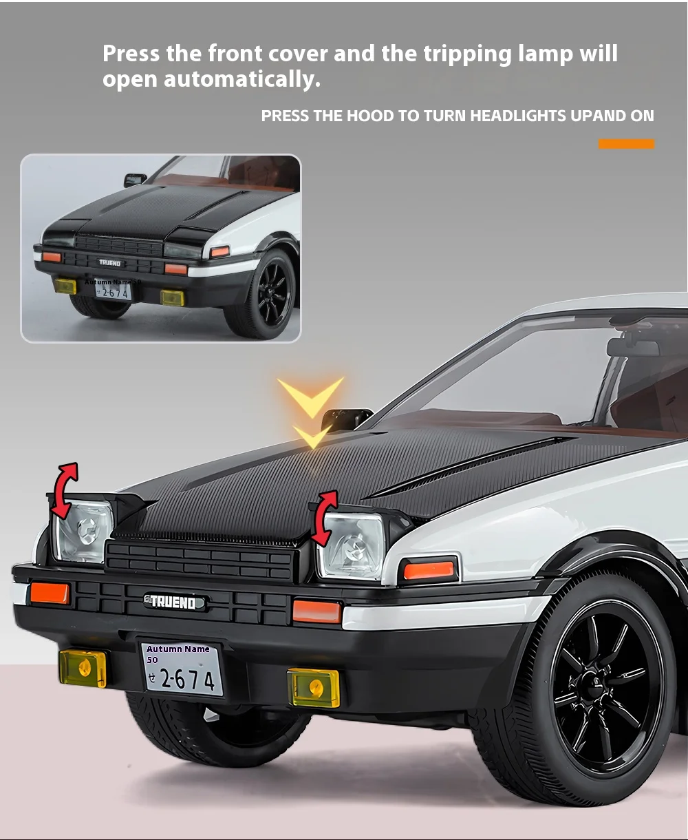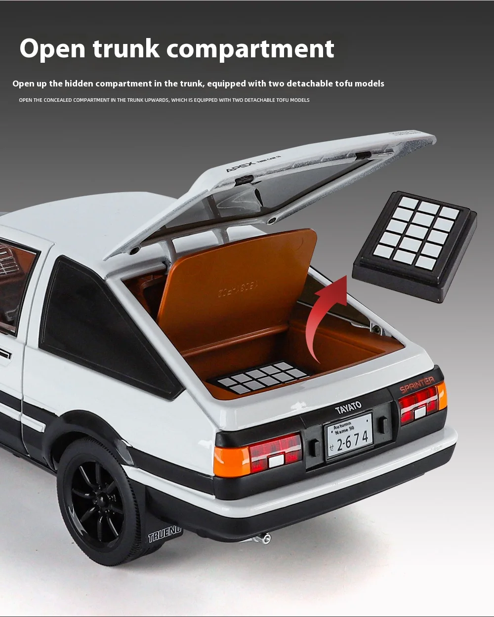 If you want to relive the excitement of Initial D or simply appreciate the iconic design of the Toyota AE86, this diecast model car is an ideal addition to your collection. Don't miss out on this opportunity to own a piece of drift racing history.