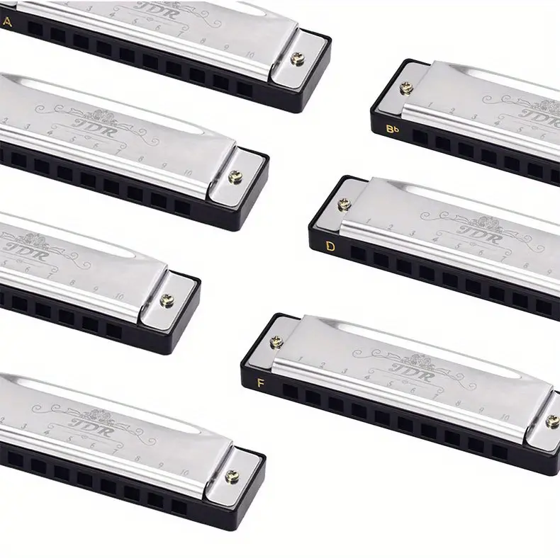 - 7x JDR Blues Harmonicas — Keys: C, D, E, F, G, A, Bb (10-hole, 20-tone)