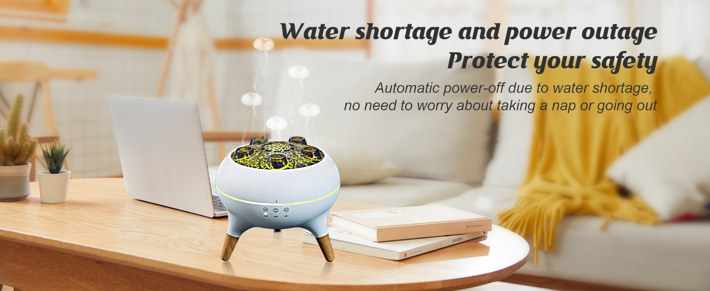 - Child-Safe Certification & Leakproof Design Jellyfish diffuser built with food-grade PP materials, auto power-off (dry tank/tip-over protection), and spill-resistant jellyfish nozzles. Safely diffuse essential oils, purified water, making it a baby-friendly home diffuser.