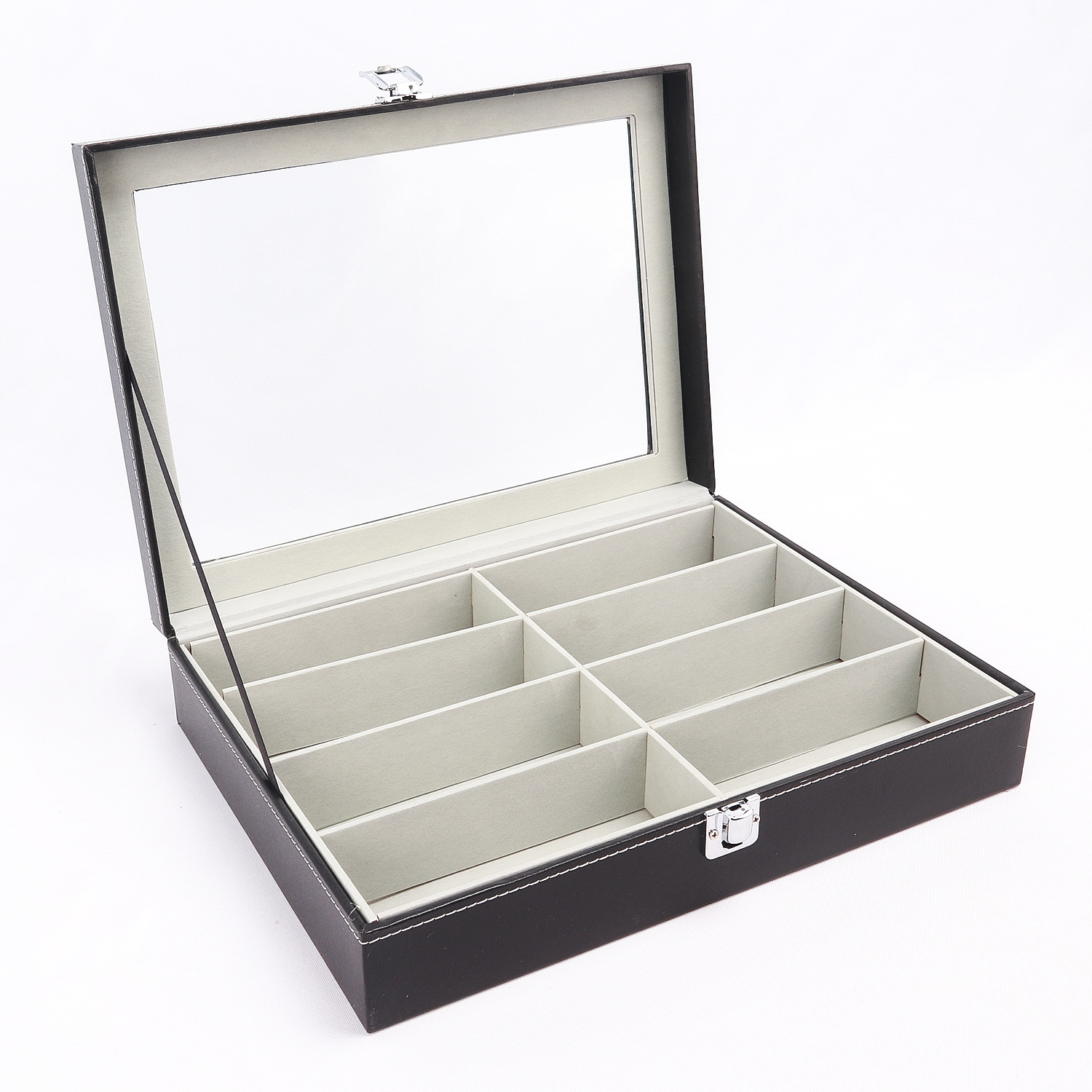 Jewelry storage box jewelry box black PU leather 8 multi-cell