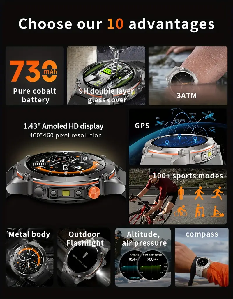 The JJMMK Smartwatch stands out for its blend of durability, innovation, and performance. Unlike ordinary watches, it’s built for adventure — combining military-grade toughness, smart features, and elegant design in one powerful wearable.