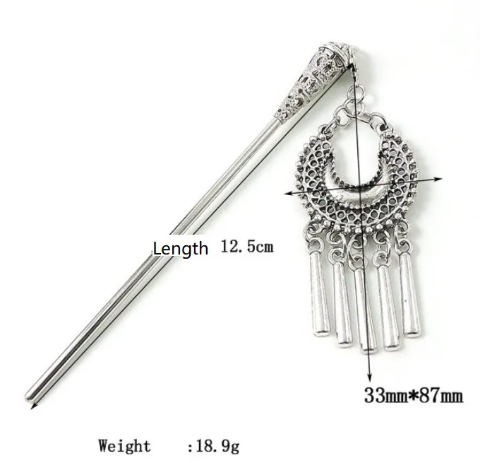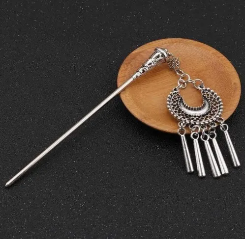Un moño de aleación de zinc casera y color plata. Esta joya para el cabello le dará un toque étnico y zen a tus recogidos.