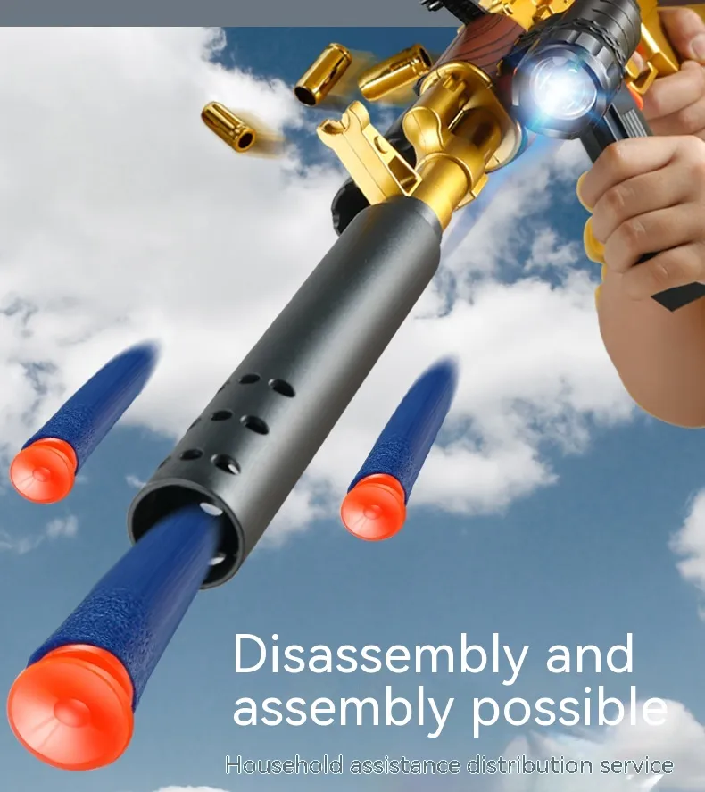 Disfruta de una diversión llena de acción con la Pistola de Balas Suaves para Niños, un lanzador de dardos de espuma seguro y emocionante, diseñado para niños y niñas. Perfecta para el juego interactivo, esta pistola de balas suaves ofrece horas de entretenimiento a la vez que fomenta el juego activo, la coordinación ojo-mano y la competencia amistosa entre niños. Diseñado con la seguridad como prioridad principal, este juguete cuenta con balas de espuma suave que son seguras para usar tanto en interiores como en exteriores, lo que lo convierte en una opción ideal para niños de todas las edades que aman las aventuras llenas de acción. La pistola de juguete está diseñada con un cuerpo duradero y ligero, fácil de manejar para los niños, lo que la hace cómoda para largos períodos de juego. Su agarre ergonómico garantiza un agarre seguro, lo que permite a los niños apuntar y disparar con precisión. Equipada con balas de espuma suave, esta pistola de juguete garantiza que el tiempo de juego sea seguro y agradable, minimizando cualquier riesgo de lesiones. El diseño brillante y colorido agrega un elemento de diversión, lo que la hace visualmente atractiva y perfecta para escenarios de juego imaginativos. Cargar y disparar las balas de espuma suave es simple y directo, lo que facilita su manejo para los niños. Ya sea una batalla en el patio, un juego de tiro al blanco o una aventura en interiores, este juguete fomenta la actividad física y el trabajo en equipo. Las balas blandas son reutilizables, lo que garantiza un juego duradero sin necesidad de reemplazos constantes. Los padres pueden tener la tranquilidad de saber que sus hijos juegan con un juguete diseñado para ofrecer la máxima diversión con el mínimo riesgo. Perfecta para cumpleaños, festividades o como premio especial, la Pistola de Balas Suaves para Niños es un regalo excelente para los niños amantes de la acción, la aventura y los juegos imaginativos. Ya sea que su hijo juegue solo o en grupo con amigos, esta pistola de juguete les brindará una emoción sin límites.