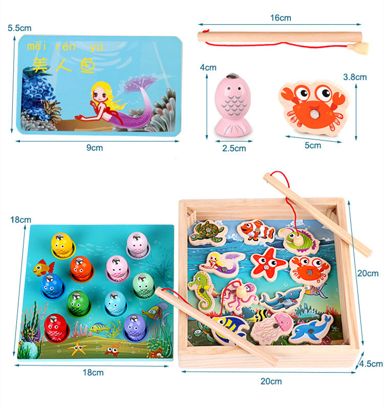 Juguete educativo de pesca magnético de madera para niños y niñas.