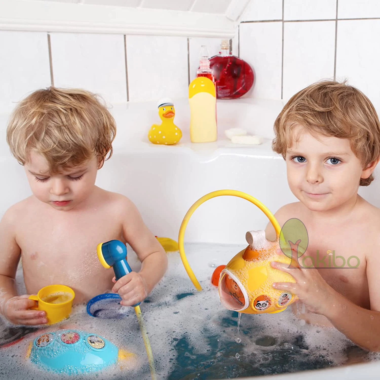 [3 métodos de rociado diferentes] - Empaque del juguete de baño: bote *1, pato giratorio *1, pato fuente *1, pato de drenaje *1. Encienda el interruptor del bote de dibujos animados, póngalo en el agua y se moverá automáticamente. Coloque el pato giratorio, el adorable patito girará, saltará y rociará agua sobre el bote; coloque el patito en la fuente, su cabeza se convertirá instantáneamente en una fuente; coloque el drenaje en su lugar y el patito rociará agua por ambos lados.