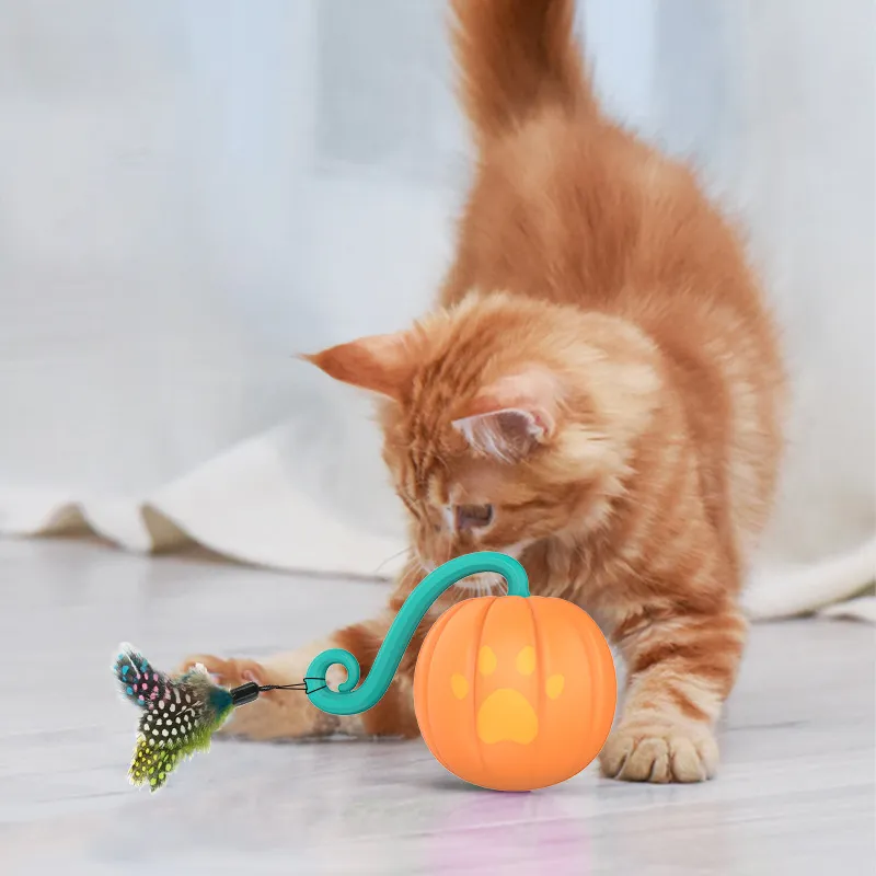 - Movimiento automático: reacciona al tacto o la proximidad de tu gato, rodando y rebotando de forma impredecible para mantener a tu mascota entretenida.