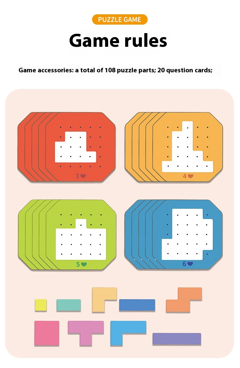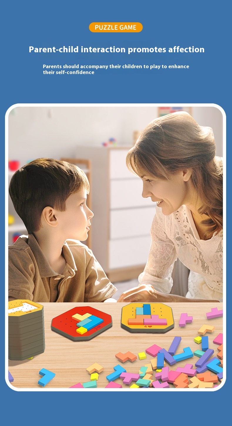 - Rompecabezas: Los tangrams de rompecabezas de Tetris hechos de madera promueven las habilidades motoras gruesas y finas de los niños, la coordinación mano-ojo, la proporción, la paciencia, la concentración, el cálculo y las habilidades analíticas.