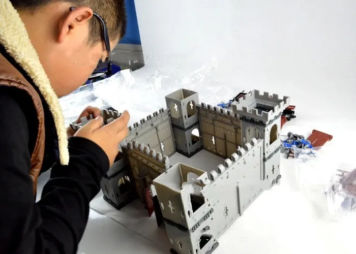 Juguetes autoensamblables para niños, maqueta de castillo, campo de batalla de asedio, traje de castillo pequeño de soldado antiguo