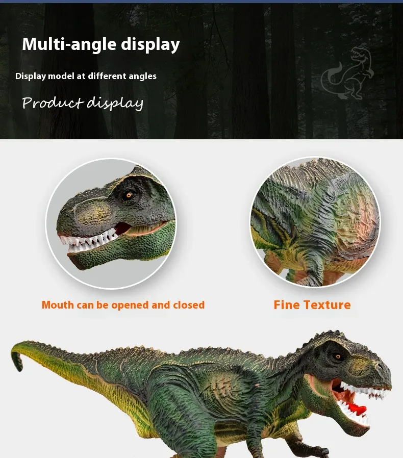 One of the most thrilling features of the Jurassic Dinosaur with Sound Effect Tyrannosaurus Dinosaur Animal Model is its sound effect capability. At the push of a button or when the dinosaur moves, it produces realistic dinosaur roars that enhance the play experience. The sound effects simulate the fierce and intimidating growls of a T-Rex, adding an element of realism that brings the dinosaur to life in an exciting way.
