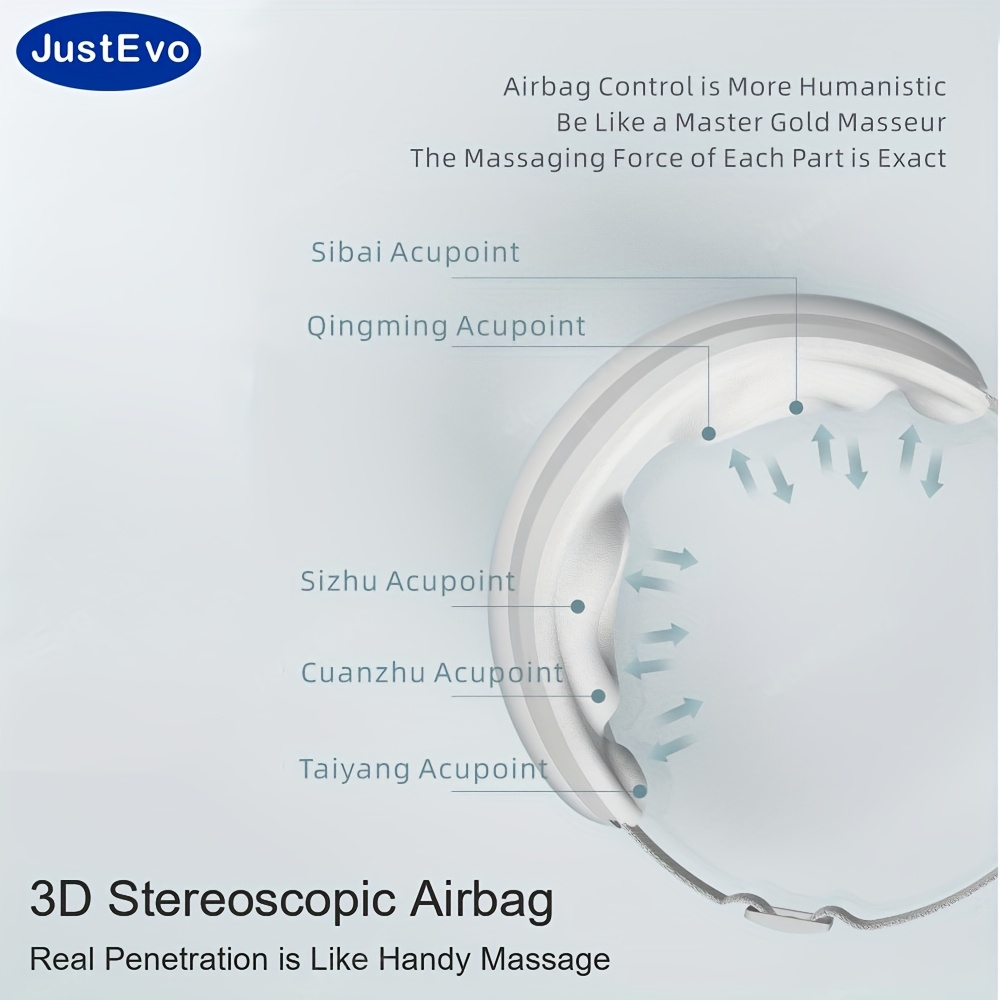 The JUSTEVO New Eye Massager offers a soothing massage that helps alleviate eye strain and fatigue caused by prolonged