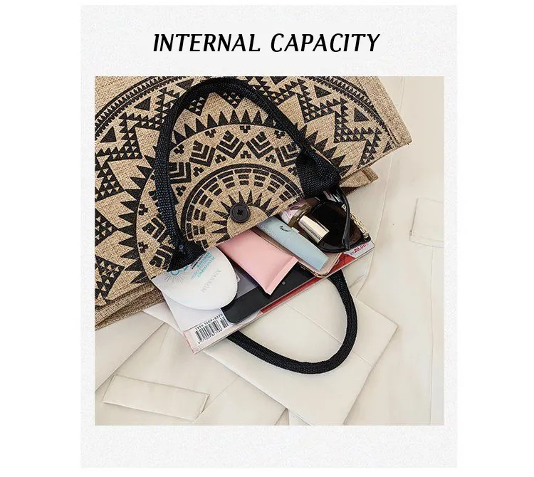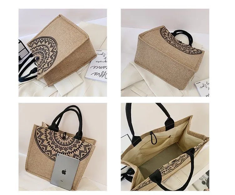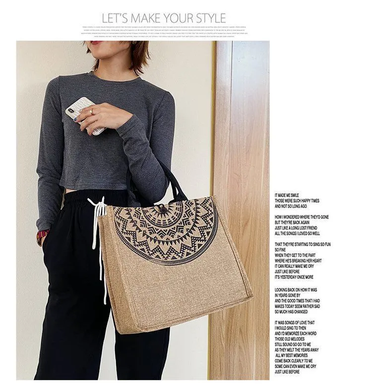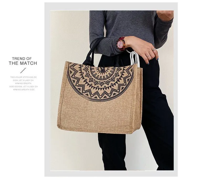 Sen line linen tote bag jute shopping bag coarse linen shoulder bag small fresh literary linen bag lady shoulder bag