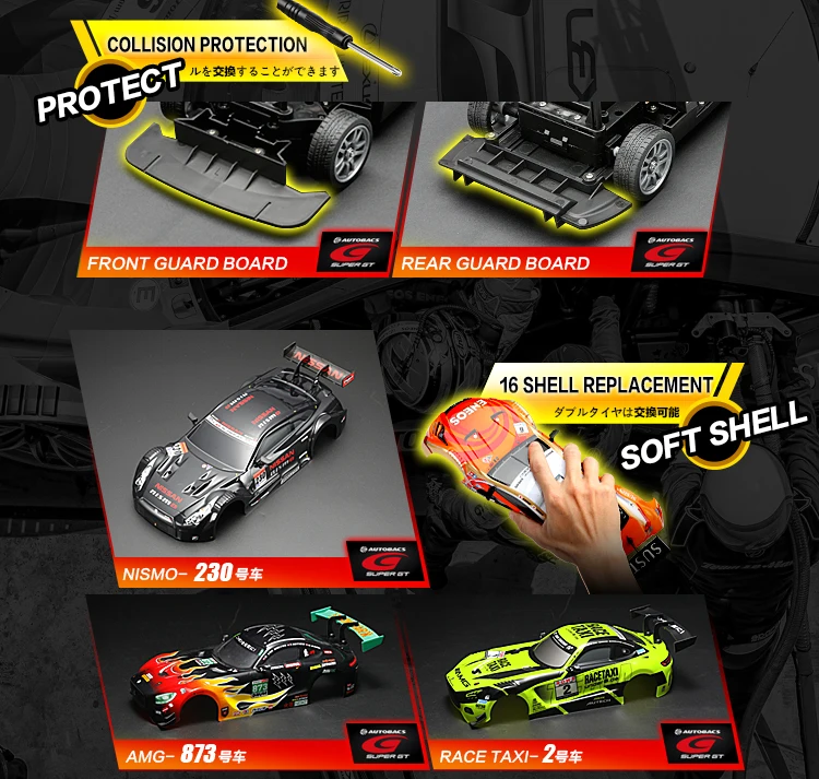 Constructed from high-quality materials, this RC car is built to withstand the rigors of intense racing sessions. Its robust design ensures longevity, even after numerous high-speed runs.