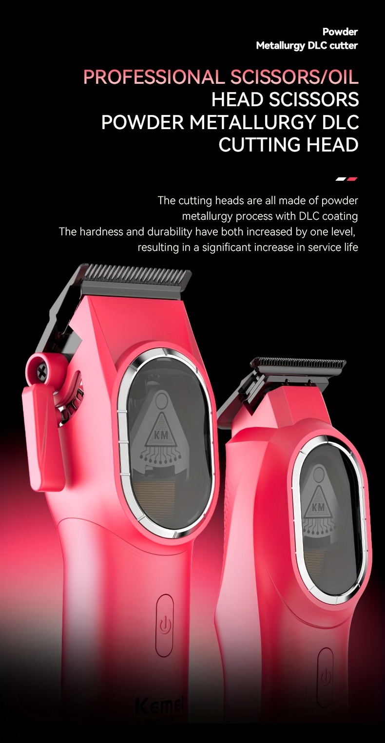 The KEMEI Electric Hair Clipper Set is designed for high-performance grooming, featuring a powerful motor and high-speed cutting capabilities. The multi-speed adjustment allows you to customize your cutting experience based on hair type and desired style. The DLC (diamond-like carbon) blades ensure that you get sharp, clean cuts every time, making it ideal for detailed work such as fades and trims.