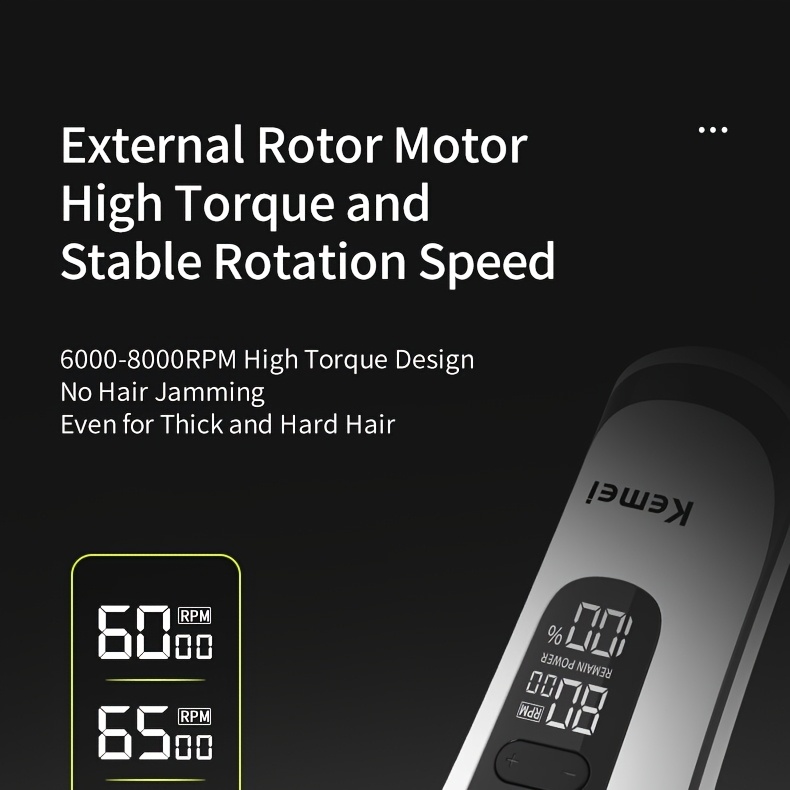 In conclusion, the KEMEI KM-1593 Professional Hair Clipper is an exceptional grooming tool designed to deliver high-performance results. With its external rotor motor, DLC blade, adjustable settings, and USB charging, this clipper is built for precision and convenience. The oil-free design and gift box packaging make it a low-maintenance and thoughtful gift option, perfect for both salon professionals and personal use.