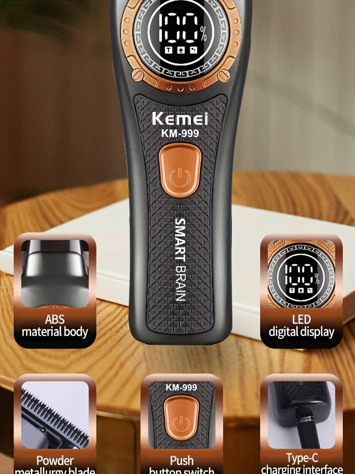 In conclusion, the KEMEI Professional Electric Hair Clipper Cutter is a luxurious, high-performance grooming tool that offers high-speed cutting, precision blades, and USB fast charging for optimal results. With its constant temperature control, long-lasting battery, and LED power display, it is an essential tool for both salons and personal use. Presented in an exquisite gift box, this clipper makes the perfect Father's Day gift or a thoughtful grooming gift for any man who values quality tools.