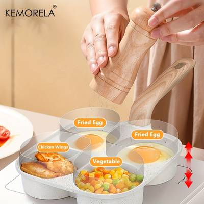 The KEMORELA 4-Section Non-Stick Frying Pan is designed for the modern cook who needs efficiency and versatility in the kitchen. This unique frying pan features four separate sections, making it easy to cook multiple ingredients simultaneously without mixing them. Ideal for cooking eggs, pancakes, burgers, or even stir-fry, this pan allows you to prepare different items at the same time, saving you time and effort during meal prep.