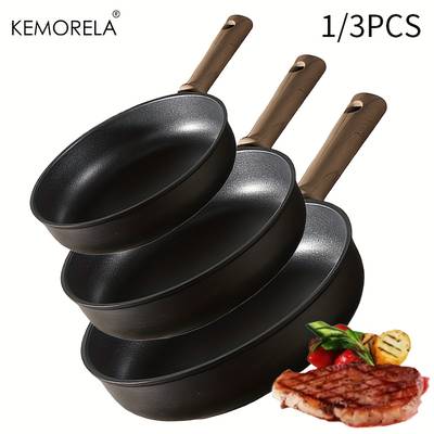 The non-stick surface makes cooking and cleaning effortless, while the enameled finish ensures long-lasting performance. The aluminum handle provides a secure and comfortable grip, even during high-heat cooking, making it easy to maneuver the pan. Dishwasher safe for added convenience, the KEMORELA Non-Stick Titanium Frying Pans are built to handle your everyday cooking needs while ensuring durability and ease of use in the kitchen.