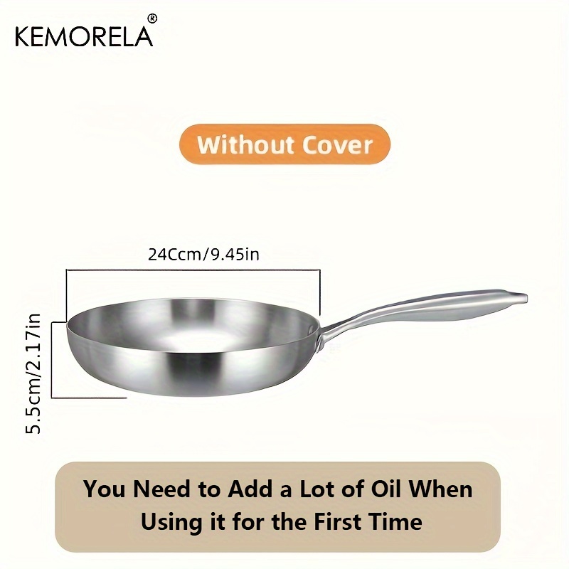 The KEMORELA Nonstick Frying Pan is crafted using high-quality 304 stainless steel, providing excellent durability, resistance to rust, and stable heat conduction. Its sleek stainless steel body ensures even heating across the surface, preventing hot spots and producing consistent cooking results—especially important for delicate foods like eggs and omelettes.