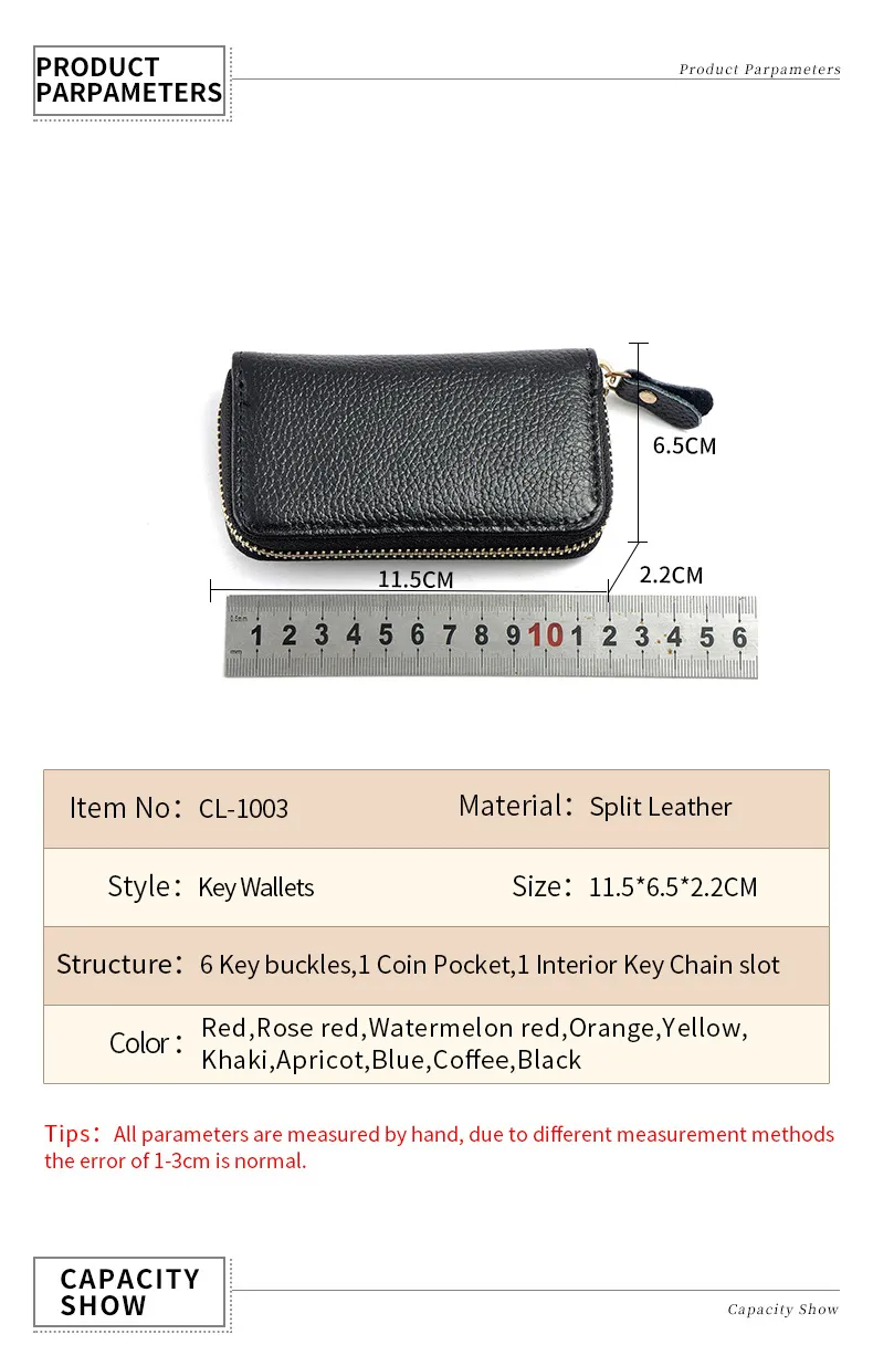 Structure: 6 Key buckles,1 Coin Pocket, 1 Interior Key Chain slot