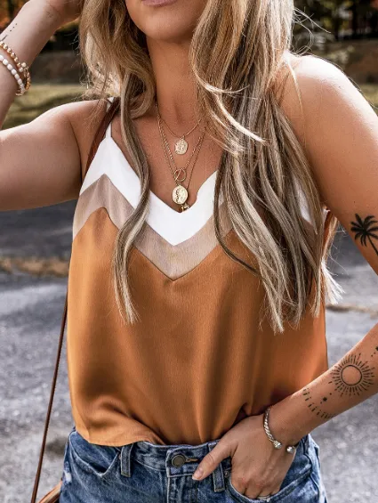 Add a pop of modern charm to your summer wardrobe with the Khaki Chevron Color Block Spaghetti Straps Tank Top. Featuring a flattering chevron pattern in neutral khaki tones, this tank top blends timeless style with a relaxed fit—perfect for sunny days, beach outings, festivals, or weekend getaways in New Zealand.