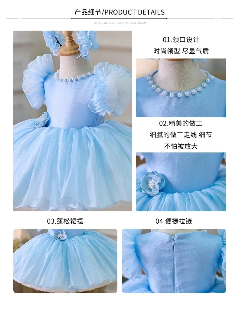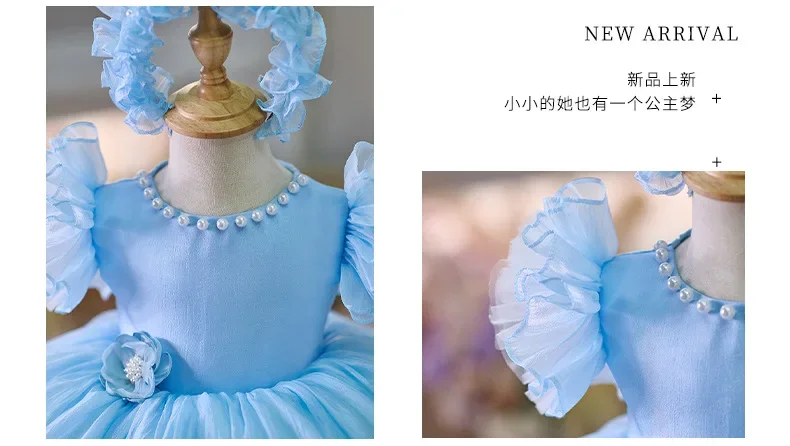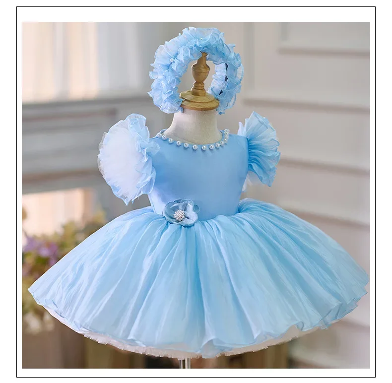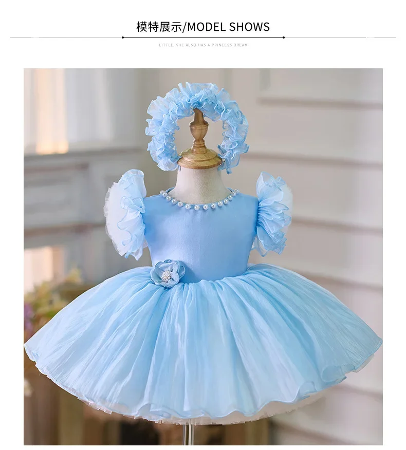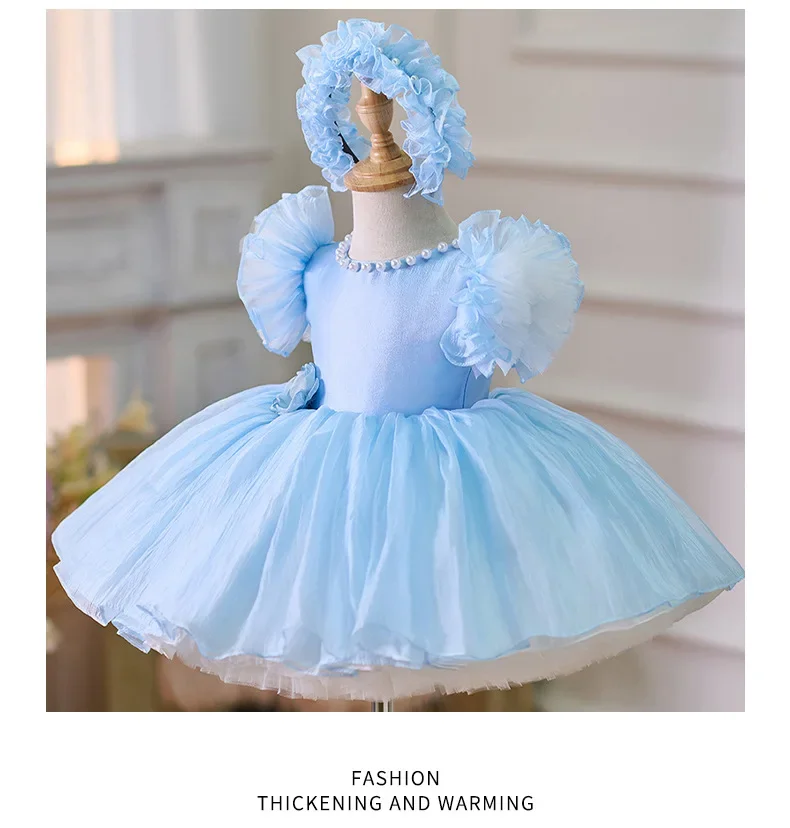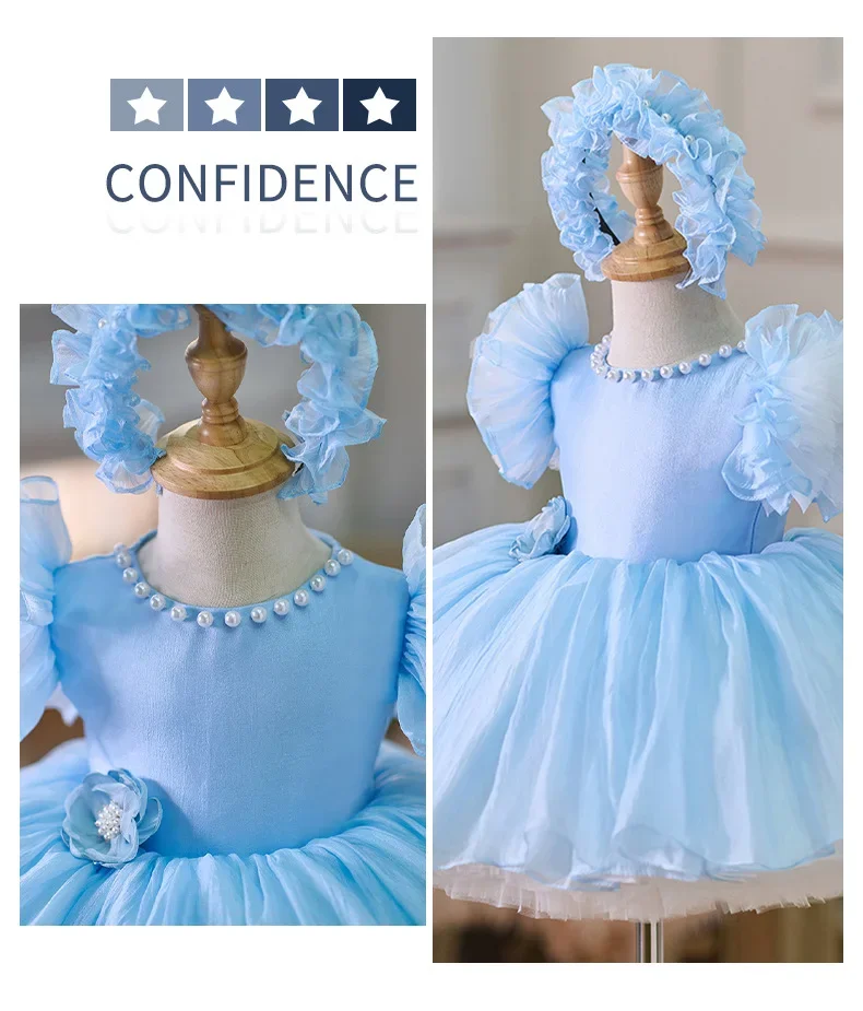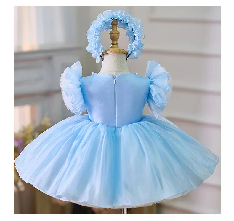 Kid Size: 12, Color: Brown - 2025 Summer Baby Girls 1st Birthday Party Dress Toddler Kids Bow Fluffy Tutu Gown Flower Girls Blue Dresses For Wedding Ceremony