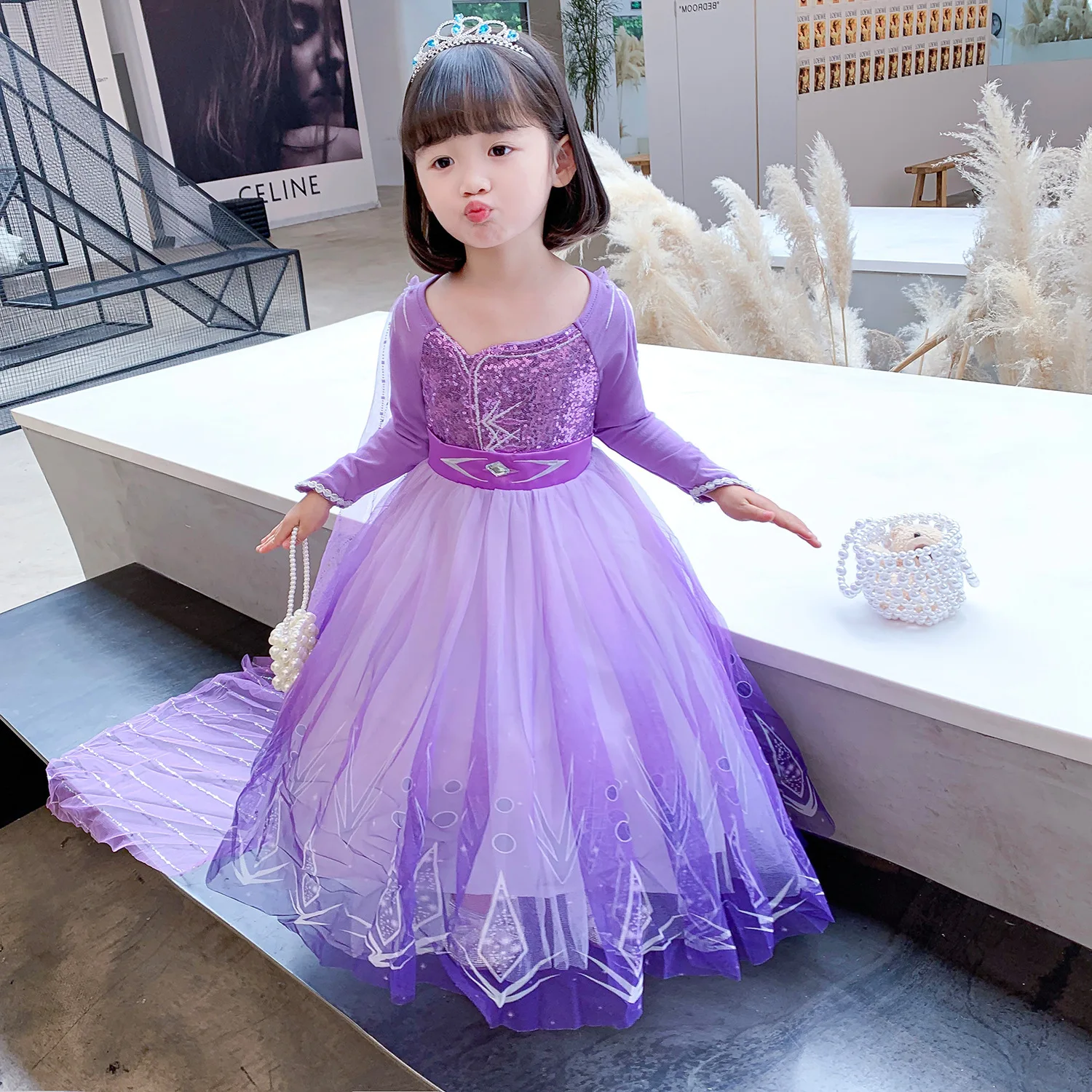 Kid Size: 13, Color: Lavender - Disney Frozen Anna Elsa Girls Princess Dresses Mesh Sequin Dress Kids Cosplay Snow Queen Costumes Carnival Birthday Party Gowns