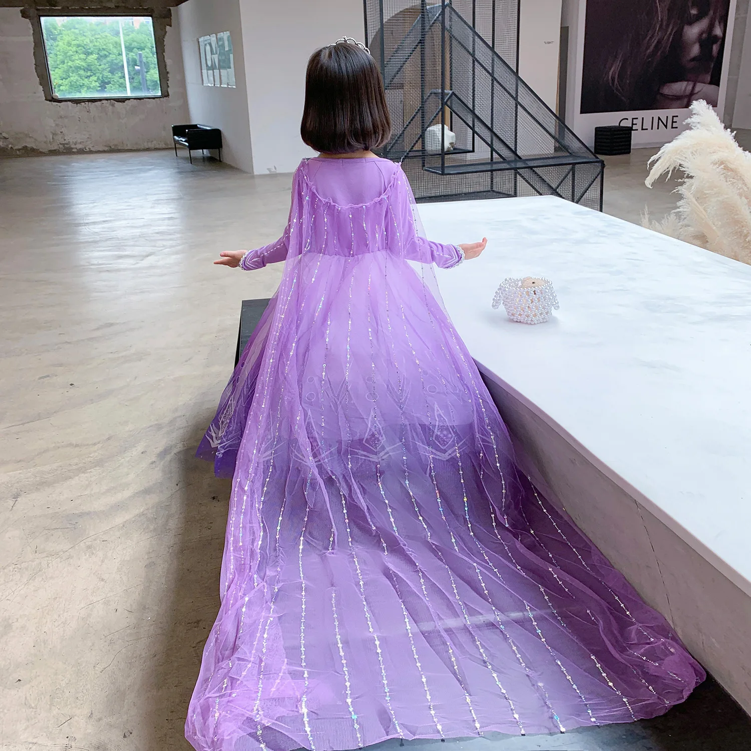 Kid Size: 14, Color: Orange - Disney Frozen Anna Elsa Girls Princess Dresses Mesh Sequin Dress Kids Cosplay Snow Queen Costumes Carnival Birthday Party Gowns