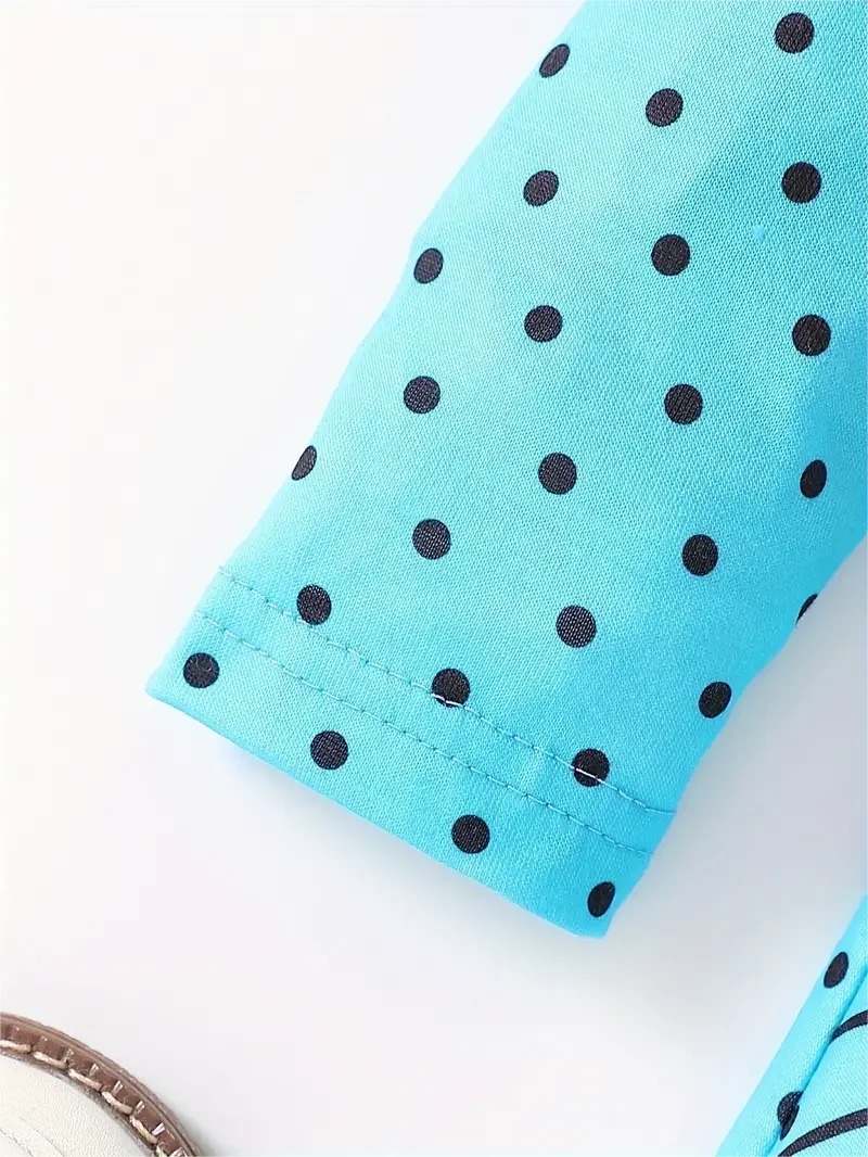 Kid Size: 4 - Dots & Kitty Print Girls Long Sleeve Dress, Spring and Autumn everyday sweet casual dress, parties, gifts