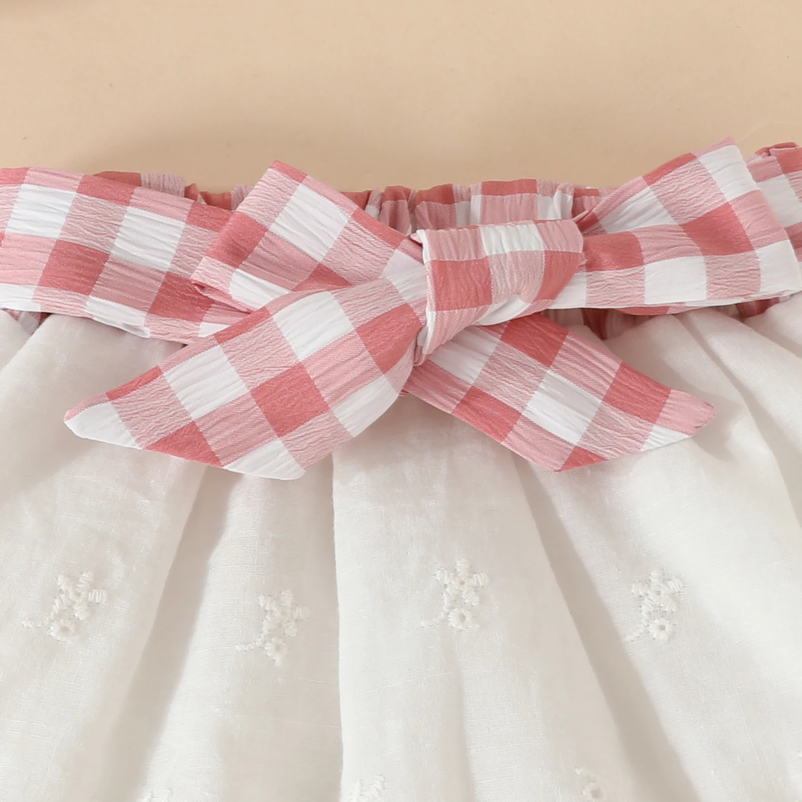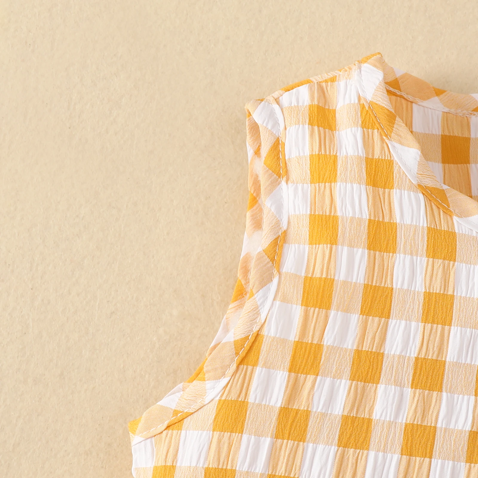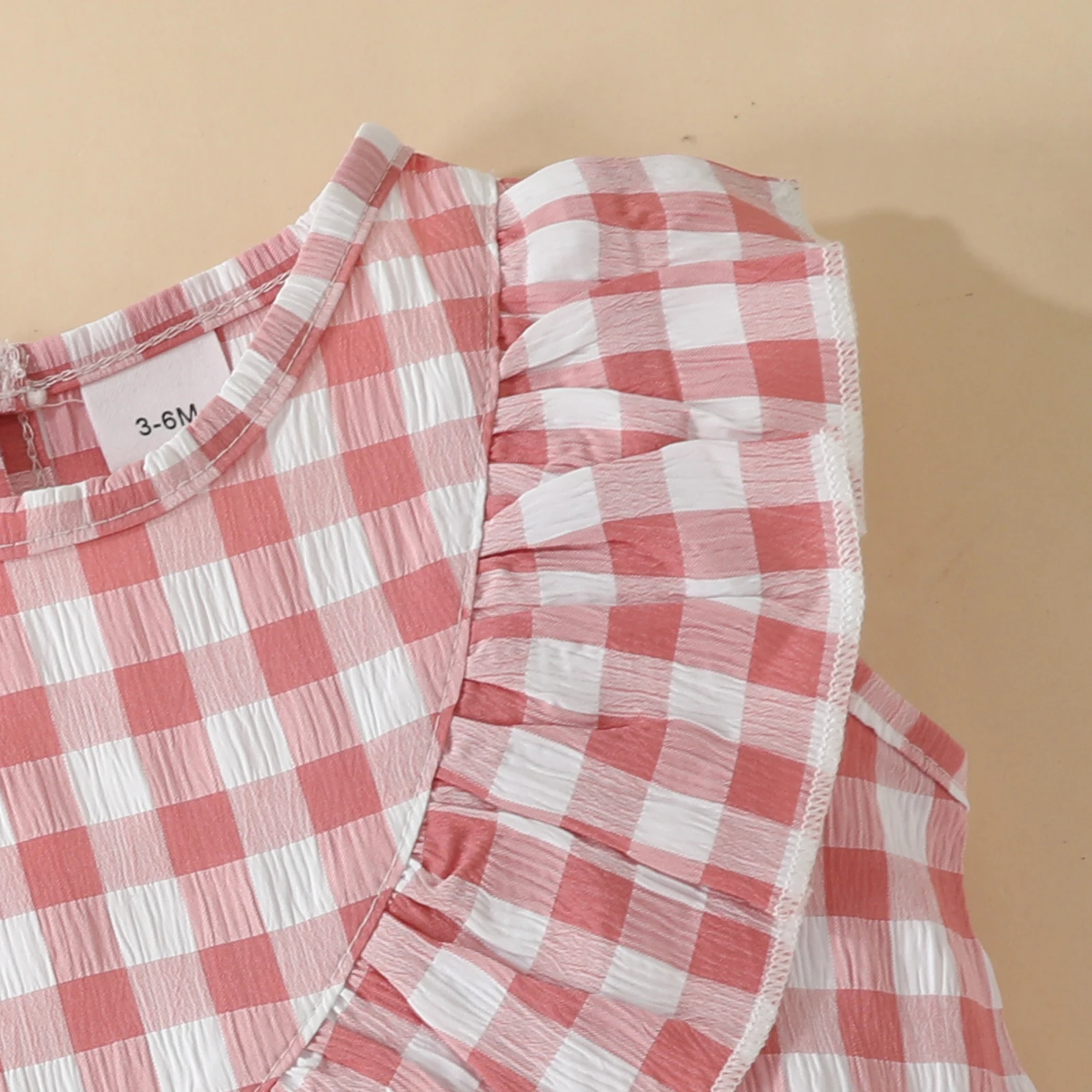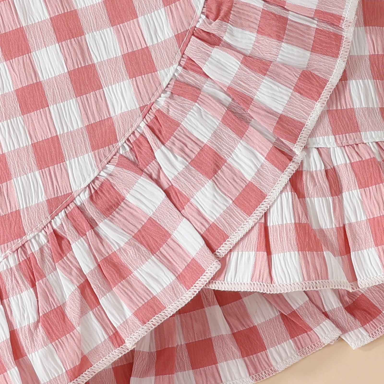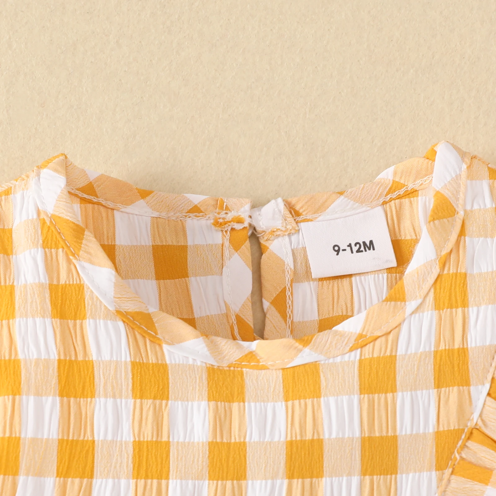 Kid Size: 9M, Color: Blue - Charming Girls' Summer Ensemble: Sleeveless Plaid Ruffle Top & Lace Hem Skirt - Comfy, Durable & Stylish