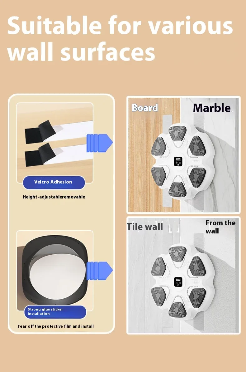 - Versatile and Portable Installation: Experience the convenience of at-home boxing with the portable and easy-to-install ONEPUNCH Music Boxing Target. Equipped with a 2m Velcro strip, you can effortlessly mount it on any smooth wall and remove it as needed.