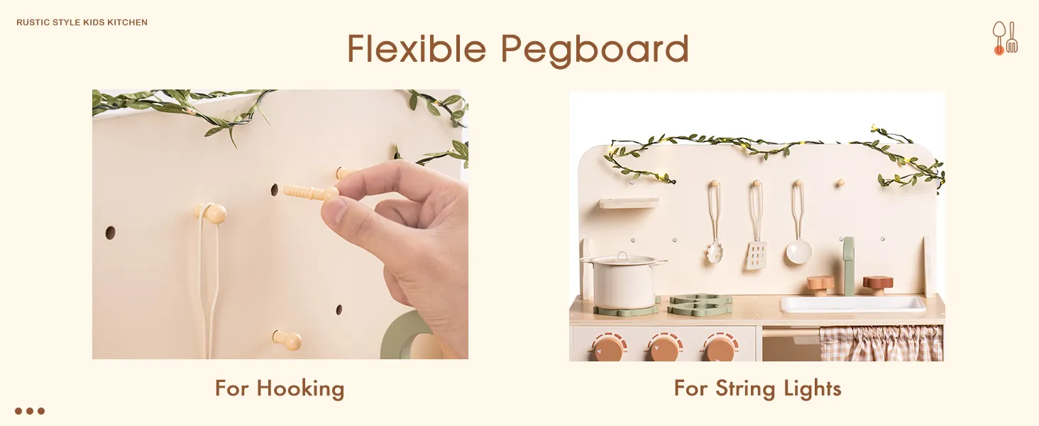 2. 【Easy to assemble】Follow the instructions for easy assembly. This set of accessories includes leaf light rope, apron, grooves and more, allowing children to create their own unique kitchen style.