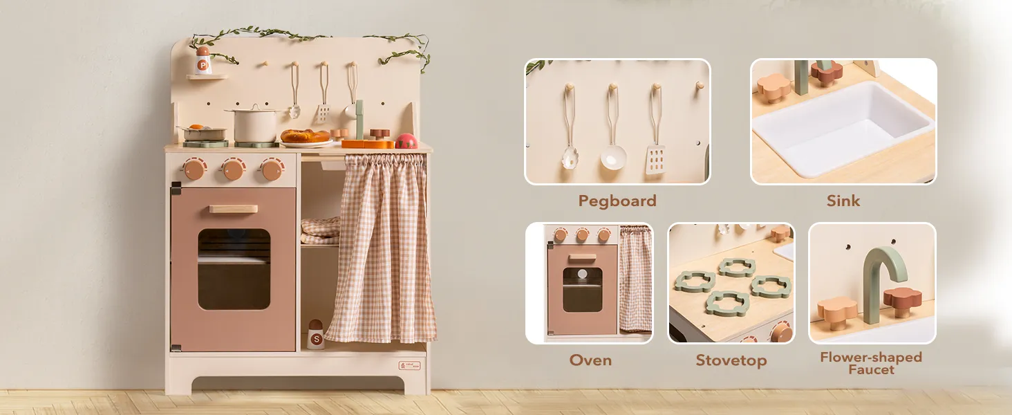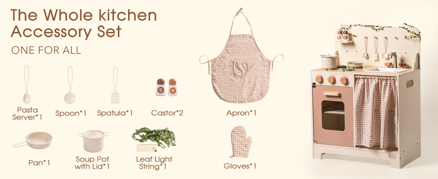2. 【Easy to assemble】Follow the instructions for easy assembly. This set of accessories includes leaf light rope, apron, grooves and more, allowing children to create their own unique kitchen style.