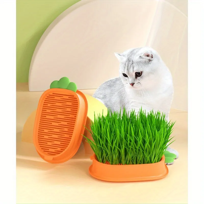 Kit de crecimiento de césped para gatos con diseño de zanahoria, caja para plantar césped, bandeja de plástico para césped de mascotas, suministros para mascotas, incluidas semillas.