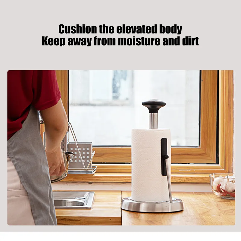 The stainless steel construction of this paper towel holder ensures that it is durable, rust-resistant, and long-lasting. Whether placed in the kitchen or bathroom, this material is both practical and stylish, offering a modern and clean look that complements any décor. The stainless steel is easy to clean, requiring only a simple wipe-down to maintain its polished appearance.