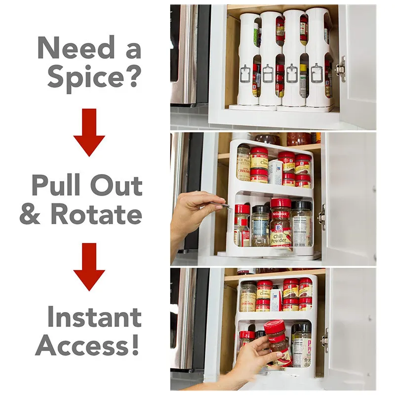 Double Tier Design: Two tiers provide more space for storing a variety of spices, seasonings, and other condiments in an