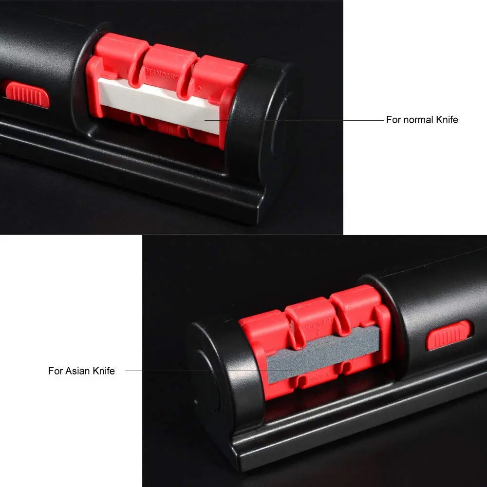 1.Sharpen both your Standard knives and your Asian style knives with the 4 stage knife sharpener.