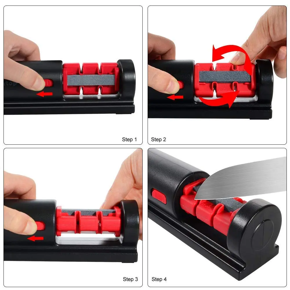 Description Material Plastic, metal Product Attributes Ordinary Package Size 200*55*60(1mm)NUOTEN 4 in 1 New Design tungsten steel Professional 4 stage Knife Sharpener for Stainless Steel Knife Grindstone Household Tool