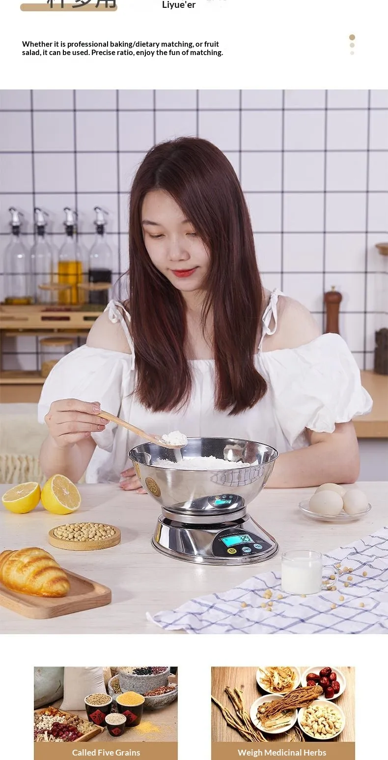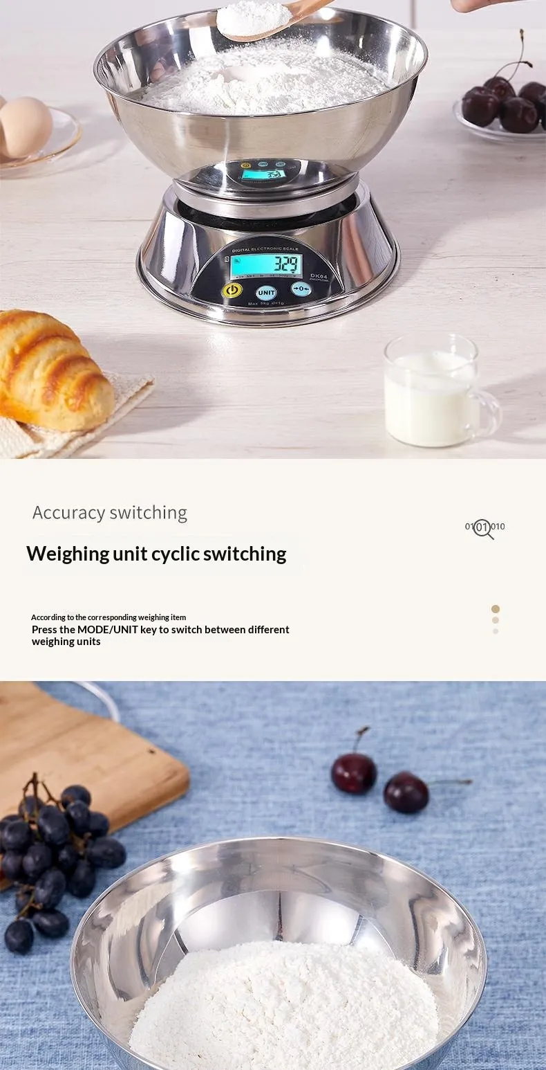 Specifications: 6 kg/1 g stainless steel platform + stainless steel bowl