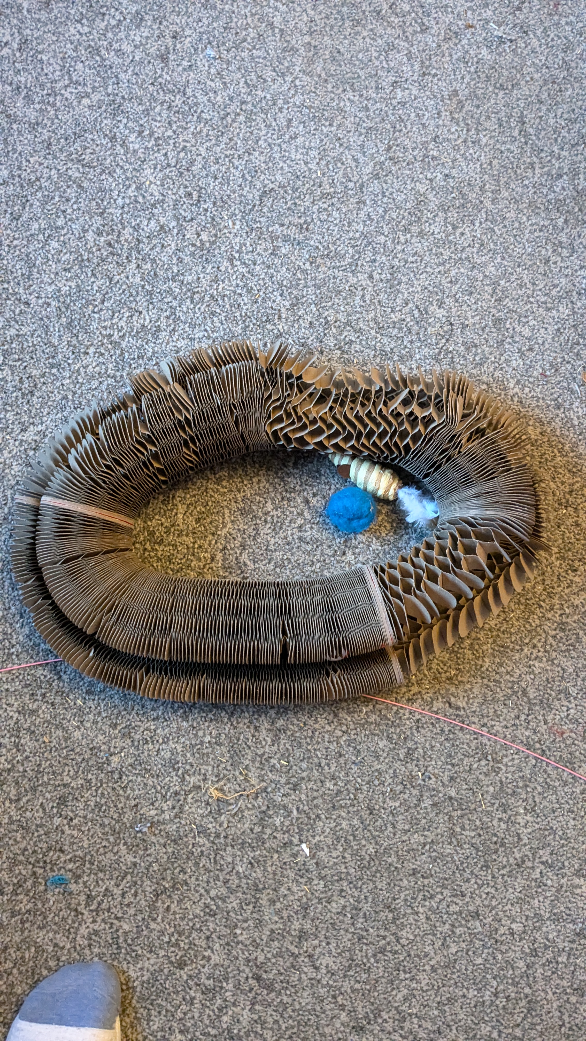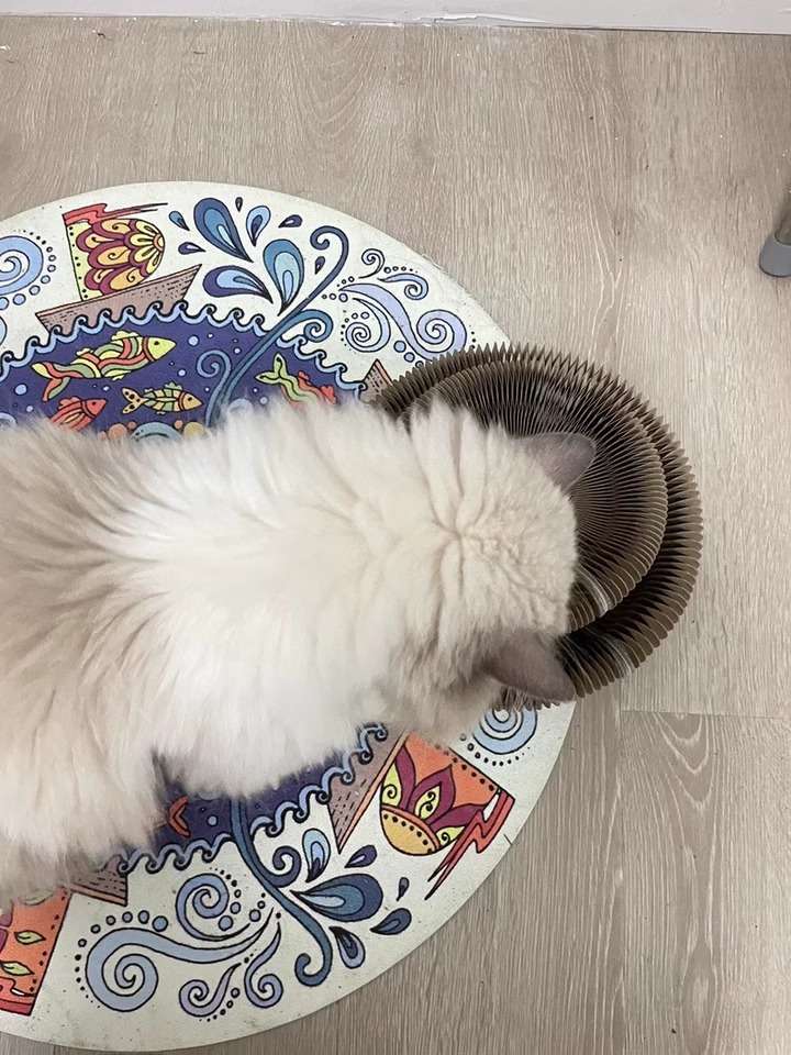 The key evolutionary leap with Kitty Kurlz was the introduction of the “magic organ” accordion structure. This structure is made of accordion-folded cardboard that can be expanded, twisted, and reshaped at will. Originally appearing in viral videos as a “cat accordion” trick, the design was captivating to cats and humans alike – cats loved the novel texture and shape, and people loved that it could change form. Kitty Kurlz took this concept and refined it: by adding embedded magnets along the edges, multiple configurations became possible. Early accordion-style scratchers were a fixed size, but Kitty Kurlz can snap together with another unit magnetically, allowing owners to create larger rings or complex shapes for multi-cat fun. This modular approach means Kitty Kurlz can evolve with your cat’s curiosity – one day it’s a compact donut-shaped bed, the next day it’s stretched into a serpentine tunnel or combined with others to form a giant scratching ring. In essence, Kitty Kurlz and similar modern toys represent a shift from static pet accessories to dynamic, reconfigurable play systems that continually surprise and engage pets.