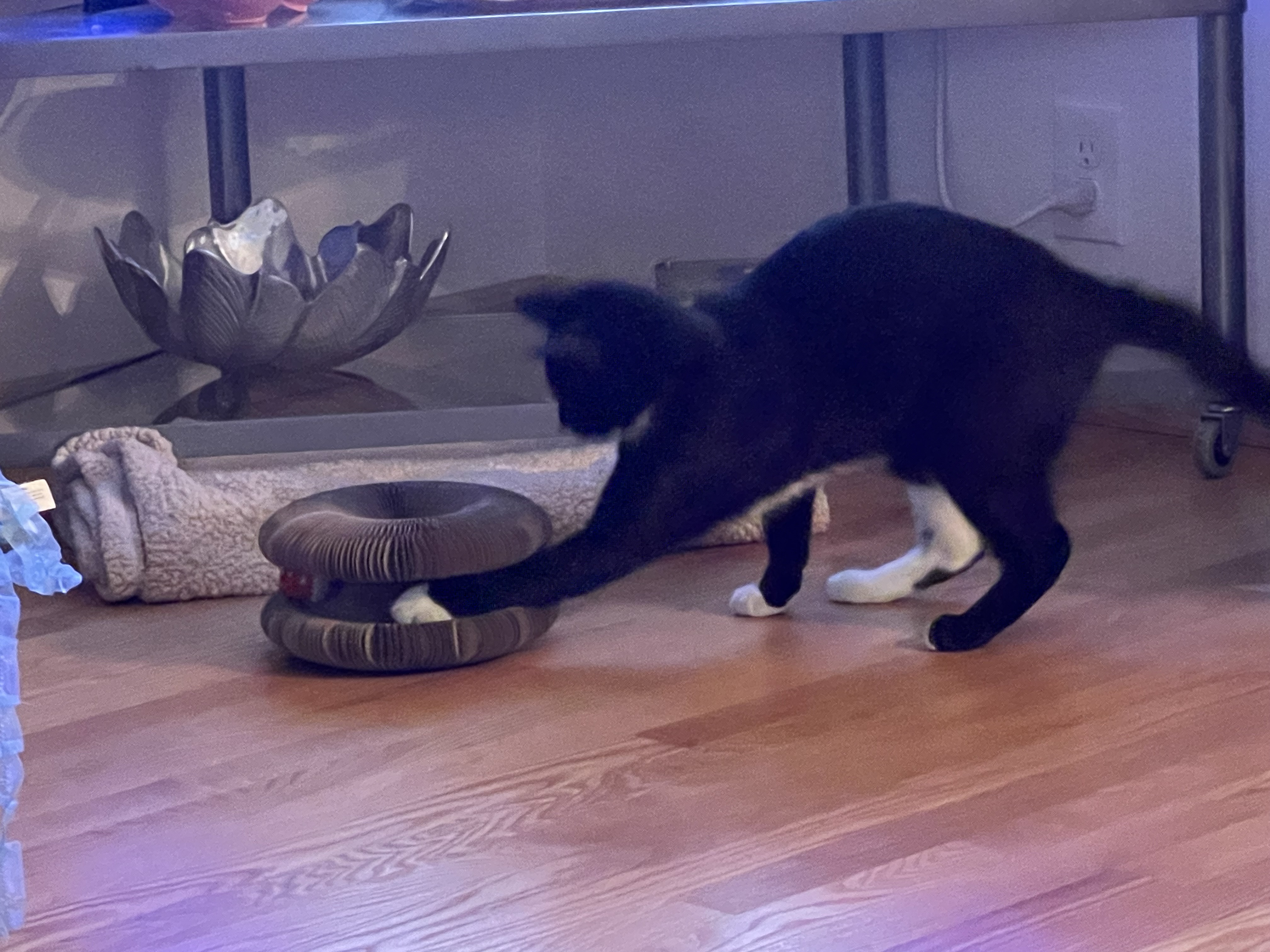 kitten, Gomez Addams, can’t get enough of his Kitty Kurlz. He lives pushing it around the house ...Show more