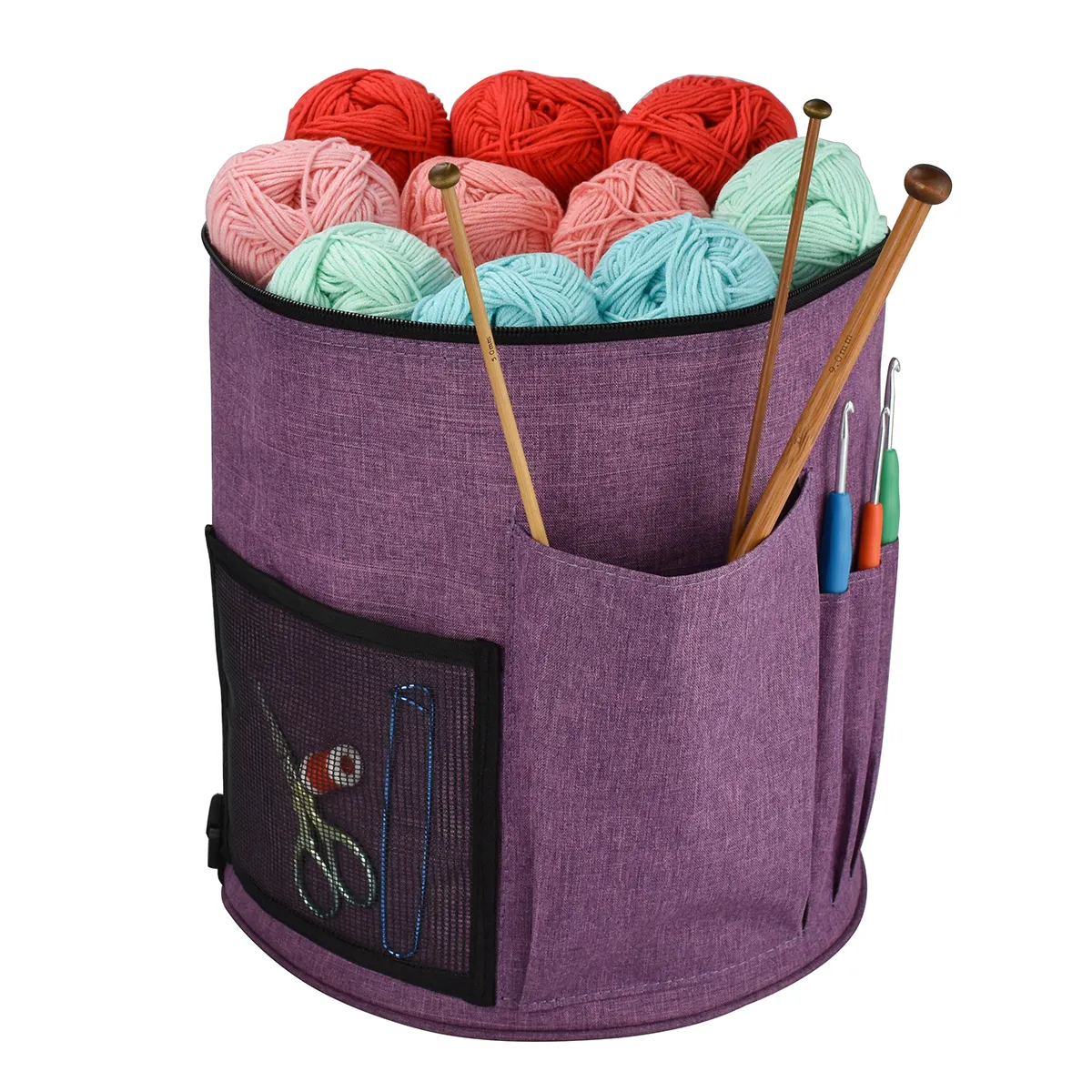 The materials used in our knitting bag are easy to clean and maintain. Simply wipe the exterior and interior with a damp cloth to remove