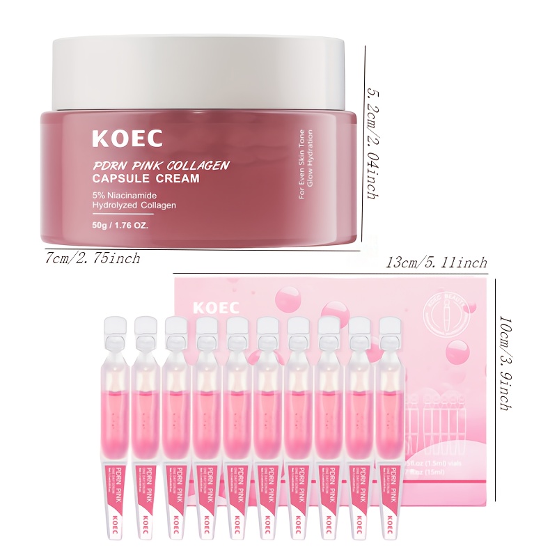 KOEC PDRN Pink Collagen Capsule Cream & Ampoule Set – Intensive Repair, Firming & Glow Care